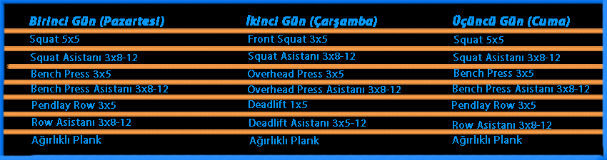 Bu program, haftada 5 gün antrenman yapmayı içerir.