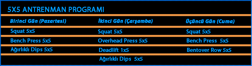 3x5 programı, özellikle yeni başlayanlar için uygun olan, düşük tekrar ve yüksek ağırlık mantığıyla çalışan bir programdır.