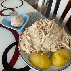 üçüncü ve dördüncü öğünüm genellikle tavuk pilav oluyor. Pilavı tereyağı ve zeytinyağı ile kavururum. Tavuğu ise haşlayarak tüketirim.
